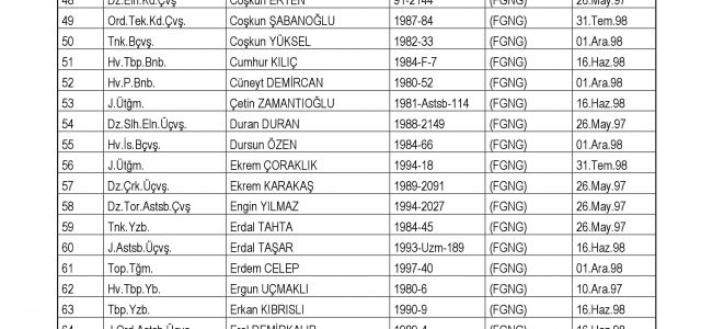 Not: 1996, 1997, 1998 ve 1999 yılları Yüksek Askeri Şura ile atılanların atılma gerekçeleri ve bilgileri iddianeme ek 94, 95, 96 ve 97 nci klasörlerde mevcuttur.
