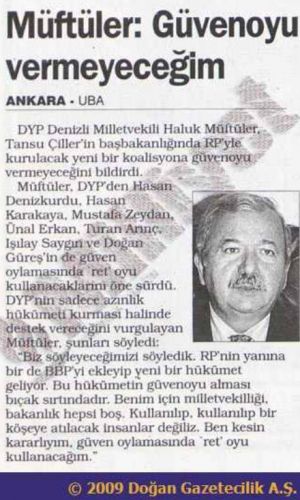 23 Haziran 1997 tarihinde : Denizli Milletvekili Haluk Müftüler
